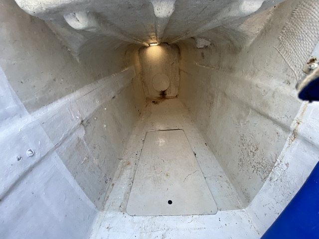 Os cascos são gêmeos, em cada casco há: duas camas de solteiro, uma a vante e outra a ré, a parte central tem pé-direito de 1,50m e boca de 0,85m.